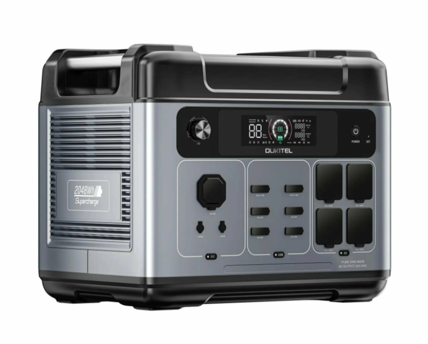 Oukitel P2001E Plus — портативная электростанция (Power Bank) с литий-железо-фосфатным (LiFePO4) аккумулятором ёмкостью 2048 Вт·ч (640 000 мАч). Устройство предназначено для автономного питания различных устройств в условиях отсутствия электричества, например, на природе, при отключении света в доме или для подключения бытовых приборов, электроинструментов и электроники.