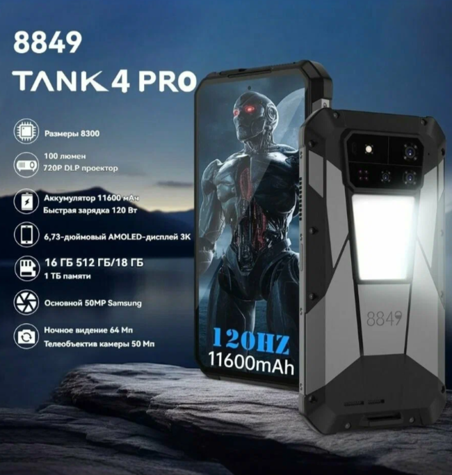 Смартфон Unihertz Tank 4 Pro 18/1 ТБ (с проектором), Global, черный (черный)